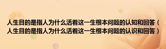 您好,今天帅帅来为大家解答以上的问题。人生目的是指人为什么活着这一生根本问题的认知和回答,人生目的是指人为什么活着这一生根本问题的认识和回答相信很多小伙伴还不知道,现在让我们一起来看看吧!