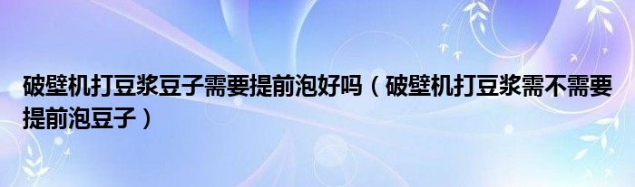 破壁机打豆浆豆子需要提前泡好吗(破壁机打豆浆需不需要提前泡豆子),真的急需帮助,求回复!
