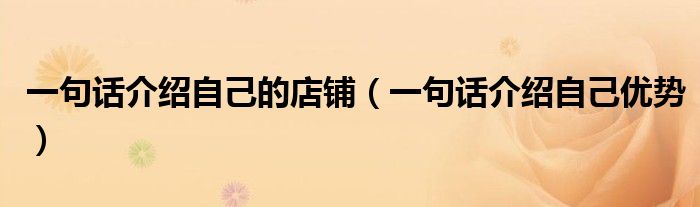 您好,今天帅帅来为大家解答以上的问题。一句话介绍自己的店铺,一句话介绍自己优势相信很多小伙伴还不知道,现在让我们一起来看看吧!