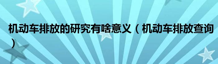 您好,今天帅帅来为大家解答以上的问题。机动车排放的研究有啥意义,机动车排放查询相信很多小伙伴还不知道,现在让我们一起来看看吧!