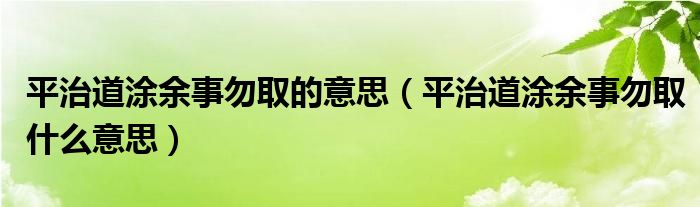 您好,今天帅帅来为大家解答以上的问题。平治道涂余事勿取的意思,平治道涂余事勿取什么意思相信很多小伙伴还不知道,现在让我们一起来看看吧!
