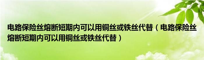 您好,今天帅帅来为大家解答以上的问题。电路保险丝熔断短期内可以用铜丝或铁丝代替,电路保险丝熔断短期内可以用铜丝或铁丝代替相信很多小伙伴还不知道,现在让我们一起来看看吧!