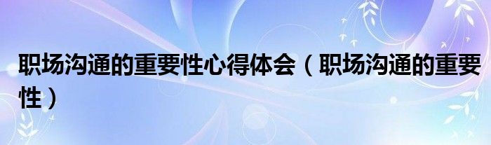 您好,今天帅帅来为大家解答以上的问题。职场沟通的重要性心得体会,职场沟通的重要性相信很多小伙伴还不知道,现在让我们一起来看看吧!