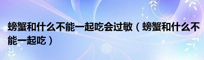 您好,今天帅帅来为大家解答以上的问题。螃蟹和什么不能一起吃会过敏,螃蟹和什么不能一起吃相信很多小伙伴还不知道,现在让我们一起来看看吧!