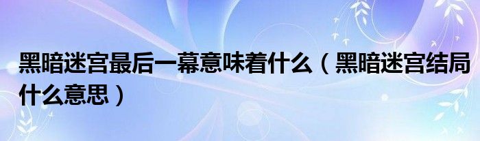 您好,今天帅帅来为大家解答以上的问题。黑暗迷宫最后一幕意味着什么,黑暗迷宫结局什么意思相信很多小伙伴还不知道,现在让我们一起来看看吧!