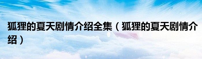 您好,今天帅帅来为大家解答以上的问题。狐狸的夏天剧情介绍全集,狐狸的夏天剧情介绍相信很多小伙伴还不知道,现在让我们一起来看看吧!