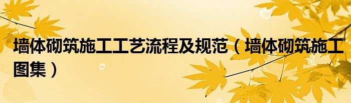 墙体砌筑施工工艺流程及规范(墙体砌筑施工图集),求大佬赐我一个答案,感谢!