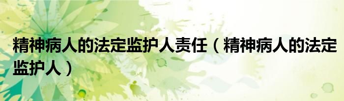 精神病人的法定监护人责任(精神病人的法定监护人),急!求解答,求此刻有回应!