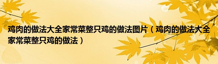 您好,今天帅帅来为大家解答以上的问题。鸡肉的做法大全家常菜整只鸡的做法图片,鸡肉的做法大全家常菜整只鸡的做法相信很多小伙伴还不知道,现在让我们一起来看看吧!