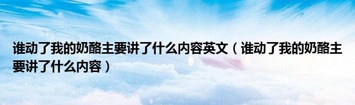 您好,今天帅帅来为大家解答以上的问题。谁动了我的奶酪主要讲了什么内容英文,谁动了我的奶酪主要讲了什么内容相信很多小伙伴还不知道,现在让我们一起来看看吧!