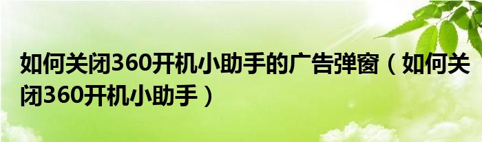 您好,今天帅帅来为大家解答以上的问题。如何关闭360开机小助手的广告弹窗,如何关闭360开机小助手相信很多小伙伴还不知道,现在让我们一起来看看吧!