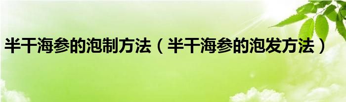 2、半干海参泡法步骤1/5器皿我都是严格按照要求无油的加适量的纯净水水要没过海参多些十厘米左右等海参都变软不硬就行啦(期间每隔五六小时就换一次水)这时可以制作冰块备用ps:这次我用的是半干海参六七个小时就行啦要是全淡干的时间会久一些2/5用剪刀顺着海参肚子上的口剪开我两边都是剪到头的这样好清理我都是用手从牙齿的部位往外揭开沙嘴和牙齿就都弄掉了至于肠我也是弄掉的如果不想弄掉的话要记得把肠截开几段据说不弄开会影响发出的大小3/5上锅煮锅内放纯净水和收拾清洗好的海参冷水上锅开锅后转中小火煮半小时然后关火等水自然冷却4/5很重要的一步哈要用到冰块啦(海参是热缩冷胀的很好玩)把海参放入加了冰块的纯净水中至少泡十二个小时期间换三次水和冰块最后一步把海参擦干水根据每次吃的量一个一组或者几个一组用保鲜膜包起来放到冰箱冷冻以后每次吃的时候拿出来再加工吃就好啦。