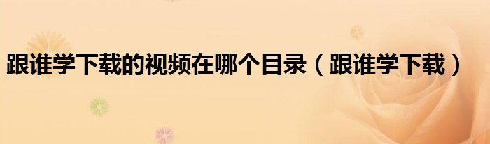 您好,今天帅帅来为大家解答以上的问题。跟谁学下载的视频在哪个目录,跟谁学下载相信很多小伙伴还不知道,现在让我们一起来看看吧!
