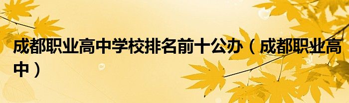 您好,今天帅帅来为大家解答以上的问题。成都职业高中学校排名前十公办,成都职业高中相信很多小伙伴还不知道,现在让我们一起来看看吧!