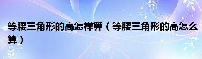 您好,今天帅帅来为大家解答以上的问题。等腰三角形的高怎样算,等腰三角形的高怎么算相信很多小伙伴还不知道,现在让我们一起来看看吧!