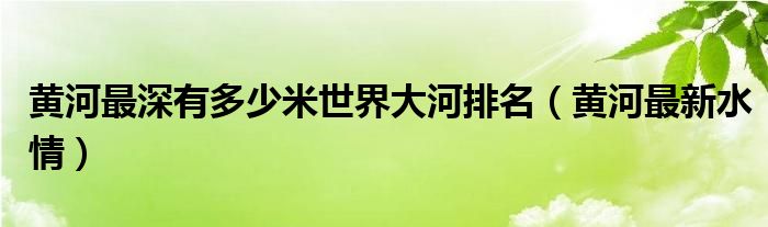 您好,今天帅帅来为大家解答以上的问题。黄河最深有多少米世界大河排名,黄河最新水情相信很多小伙伴还不知道,现在让我们一起来看看吧!