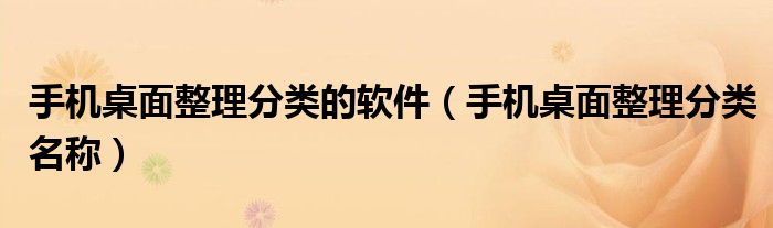 您好,今天帅帅来为大家解答以上的问题。手机桌面整理分类的软件,手机桌面整理分类名称相信很多小伙伴还不知道,现在让我们一起来看看吧!