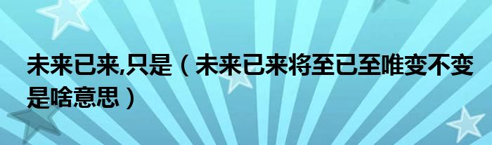 您好,今天帅帅来为大家解答以上的问题。未来已来,只是,未来已来将至已至唯变不变是啥意思相信很多小伙伴还不知道,现在让我们一起来看看吧!
