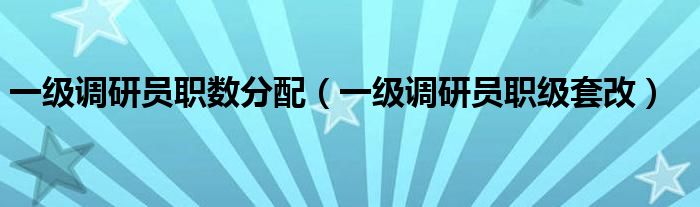 您好,今天帅帅来为大家解答以上的问题。一级调研员职数分配,一级调研员职级套改相信很多小伙伴还不知道,现在让我们一起来看看吧!