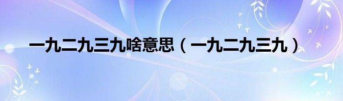 您好,今天帅帅来为大家解答以上的问题。一九二九三九啥意思,一九二九三九相信很多小伙伴还不知道,现在让我们一起来看看吧!
