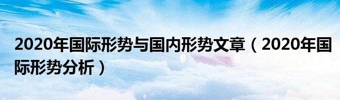 您好,今天帅帅来为大家解答以上的问题。2020年国际形势与国内形势文章,2020年国际形势分析相信很多小伙伴还不知道,现在让我们一起来看看吧!