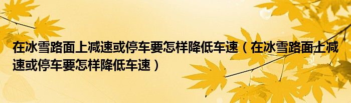 1、在冰雪路面上减速或停车要采用降挡利用发动机来制动降低车速。