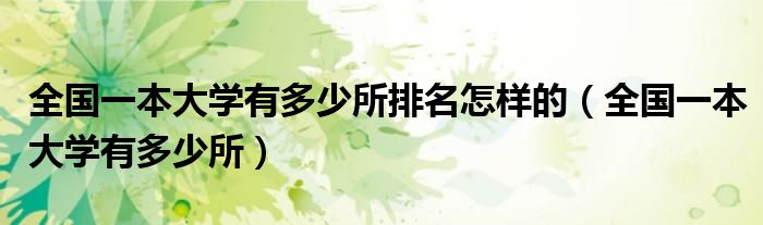 您好,今天帅帅来为大家解答以上的问题。全国一本大学有多少所排名怎样的,全国一本大学有多少所相信很多小伙伴还不知道,现在让我们一起来看看吧!