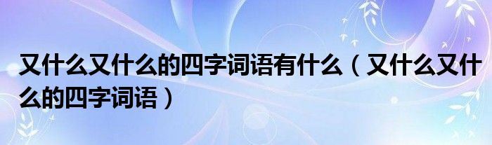 您好,今天帅帅来为大家解答以上的问题。又什么又什么的四字词语有什么,又什么又什么的四字词语相信很多小伙伴还不知道,现在让我们一起来看看吧!