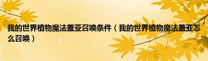 您好,今天帅帅来为大家解答以上的问题。我的世界植物魔法盖亚召唤条件,我的世界植物魔法盖亚怎么召唤相信很多小伙伴还不知道,现在让我们一起来看看吧!