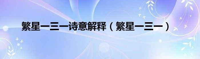 您好,今天帅帅来为大家解答以上的问题。繁星一三一诗意解释,繁星一三一相信很多小伙伴还不知道,现在让我们一起来看看吧!