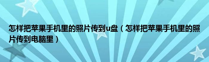 您好,今天帅帅来为大家解答以上的问题。怎样把苹果手机里的照片传到u盘,怎样把苹果手机里的照片传到电脑里相信很多小伙伴还不知道,现在让我们一起来看看吧!
