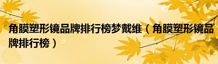 1、阿迩发角膜塑形镜、菁视角膜塑形镜、梦戴维角膜塑形镜、科视角膜塑形镜、欧几里德角膜塑形镜都是不错的角膜塑形镜欧几里德角膜塑形镜:美国欧几里德公司是角膜塑形镜专业生产企业。