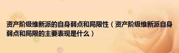 您好,今天帅帅来为大家解答以上的问题。资产阶级维新派的自身弱点和局限性,资产阶级维新派自身弱点和局限的主要表现是什么相信很多小伙伴还不知道,现在让我们一起来看看吧!