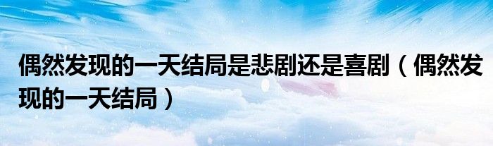 您好,今天帅帅来为大家解答以上的问题。偶然发现的一天结局是悲剧还是喜剧,偶然发现的一天结局相信很多小伙伴还不知道,现在让我们一起来看看吧!
