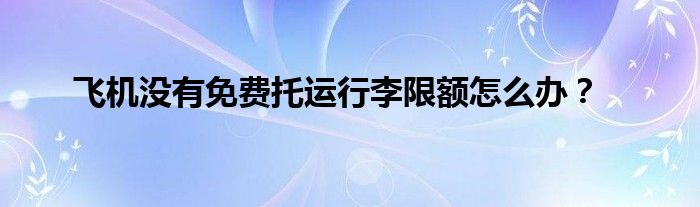 您好,今天帅帅来为大家解答以上的问题。飞机没有免费托运行李限额怎么办?相信很多小伙伴还不知道,现在让我们一起来看看吧!