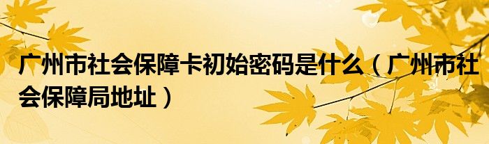您好,今天帅帅来为大家解答以上的问题。广州市社会保障卡初始密码是什么,广州市社会保障局地址相信很多小伙伴还不知道,现在让我们一起来看看吧!