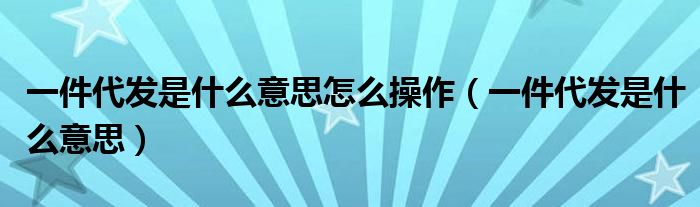 一件代发是什么意思怎么操作(一件代发是什么意思),麻烦给回复
