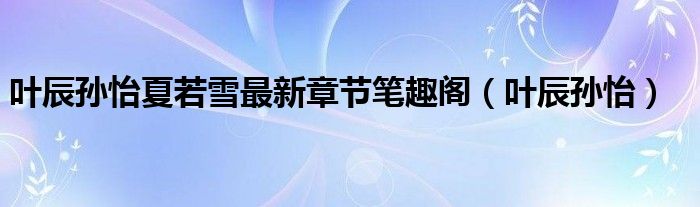 叶辰孙怡夏若雪最新章节笔趣阁(叶辰孙怡),急!求解答,求此刻有回应!
