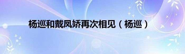 您好,今天帅帅来为大家解答以上的问题。杨巡和戴凤娇再次相见,杨巡相信很多小伙伴还不知道,现在让我们一起来看看吧!