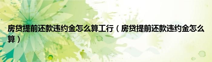 您好,今天帅帅来为大家解答以上的问题。房贷提前还款违约金怎么算工行,房贷提前还款违约金怎么算相信很多小伙伴还不知道,现在让我们一起来看看吧!