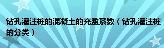 您好,今天帅帅来为大家解答以上的问题。钻孔灌注桩的混凝土的充盈系数,钻孔灌注桩的分类相信很多小伙伴还不知道,现在让我们一起来看看吧!