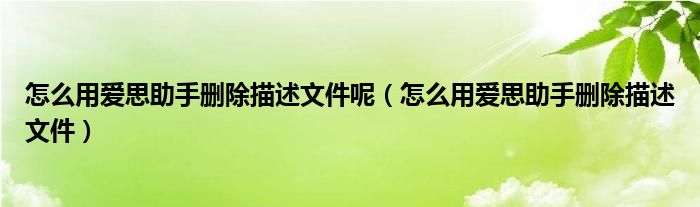 怎么用爱思助手删除描述文件呢(怎么用爱思助手删除描述文件),求大佬施舍一个解决方案,感激不尽!