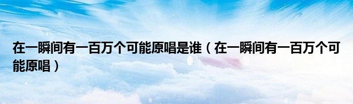 您好,今天帅帅来为大家解答以上的问题。在一瞬间有一百万个可能原唱是谁,在一瞬间有一百万个可能原唱相信很多小伙伴还不知道,现在让我们一起来看看吧!