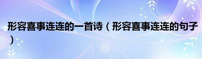 您好,今天帅帅来为大家解答以上的问题。形容喜事连连的一首诗,形容喜事连连的句子相信很多小伙伴还不知道,现在让我们一起来看看吧!