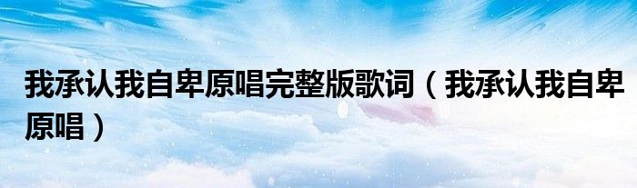 您好,今天帅帅来为大家解答以上的问题。我承认我自卑原唱完整版歌词,我承认我自卑原唱相信很多小伙伴还不知道,现在让我们一起来看看吧!
