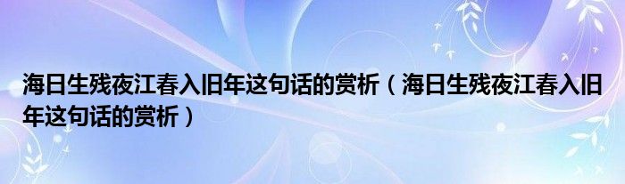 您好,今天帅帅来为大家解答以上的问题。海日生残夜江春入旧年这句话的赏析,海日生残夜江春入旧年这句话的赏析相信很多小伙伴还不知道,现在让我们一起来看看吧!