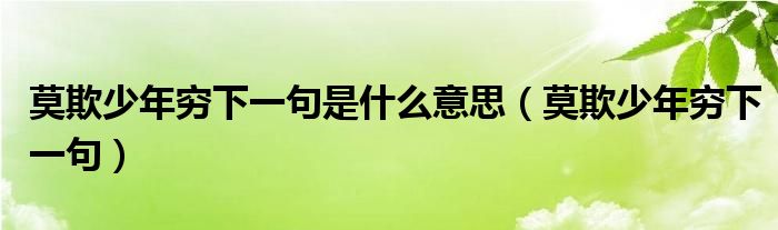 您好,今天帅帅来为大家解答以上的问题。莫欺少年穷下一句是什么意思,莫欺少年穷下一句相信很多小伙伴还不知道,现在让我们一起来看看吧!