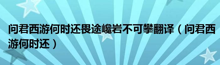 您好,今天帅帅来为大家解答以上的问题。问君西游何时还畏途巉岩不可攀翻译,问君西游何时还相信很多小伙伴还不知道,现在让我们一起来看看吧!