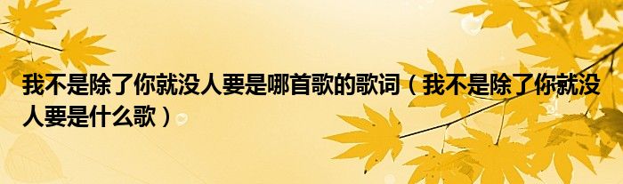 1、“不是除了你我就没人要了”是歌曲《忘情果》中的歌词。