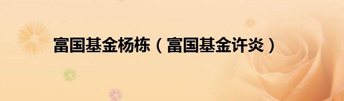 您好,今天帅帅来为大家解答以上的问题。富国基金杨栋,富国基金许炎相信很多小伙伴还不知道,现在让我们一起来看看吧!
